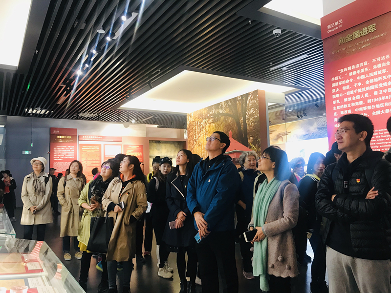 教师党员在香山革命纪念馆参观了《为新中国奠基——中共中央在北京香山》的主题展览。主题展由“进京‘赶考’”、“进驻香山”、“继续指挥解放全中国”、“新中国筹建”、“不忘初心、牢记使命、永远奋斗”五个部分组成,按照历史脉络,全景式呈现了中国共产党领导中国人民夺取全国胜利和党中央筹建中华人民共和国的丰功伟绩。主题展由800多张图片、报照、地图、表格和1200多件实物、文献和档案等组成,生动呈现中共中央在香山期间领导全国各族人民,完成民族独立和人民解放的历史使命、开启中国历史发展新纪元的光辉历程。