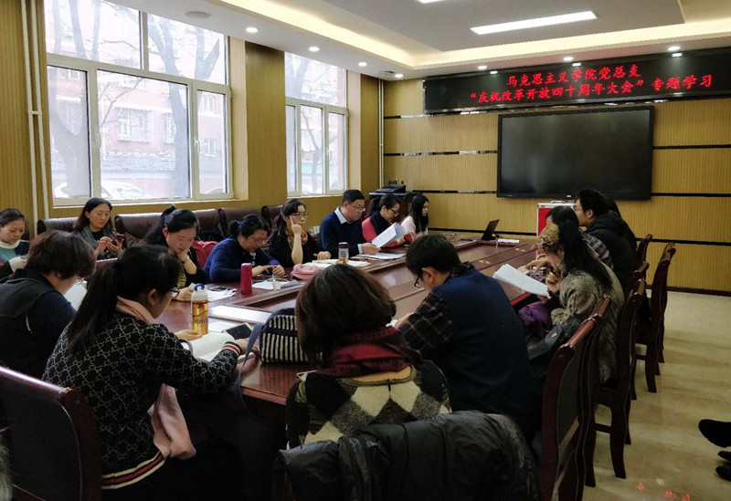 朱倩老师以《深入学习贯彻习近平总书记在庆祝改革开放四十周年大会上的重要讲话》为题,给教工党员们上了一堂党课。她从改革开放的历史背景、历史地位、伟大成就和宝贵经验以及改革进入新征程四个方面,系统地解读了习近平总书记的重要讲话。根据习总书记重要讲话的内容,她指出,改革开放已进入新征程,思想政治理论课教师承担着马克思主义理论课公司产品任务,肩负着宣讲马克思主义理论最新成果的政治使命,我们要更加紧密地团结在党中央周围,高举中国特色社会主义伟大旗帜,不忘初心,牢记使命,为培养社会主义建设者和接班人做出更大的贡献!