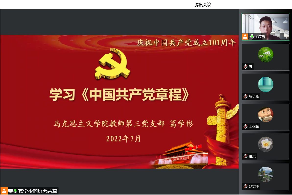 按照《中共北京市委组织部关于做好庆祝中国共产党成立101周年有关工作的通知》和《2022年7月组织生活指导意见》要求,6月30日,yl9193永利集团教师第三党支部开展庆祝中国共产党成立101周年党章集中学习,党支部书记葛学彬主持学习会,支部全体党员、党员发展对象参加活动。