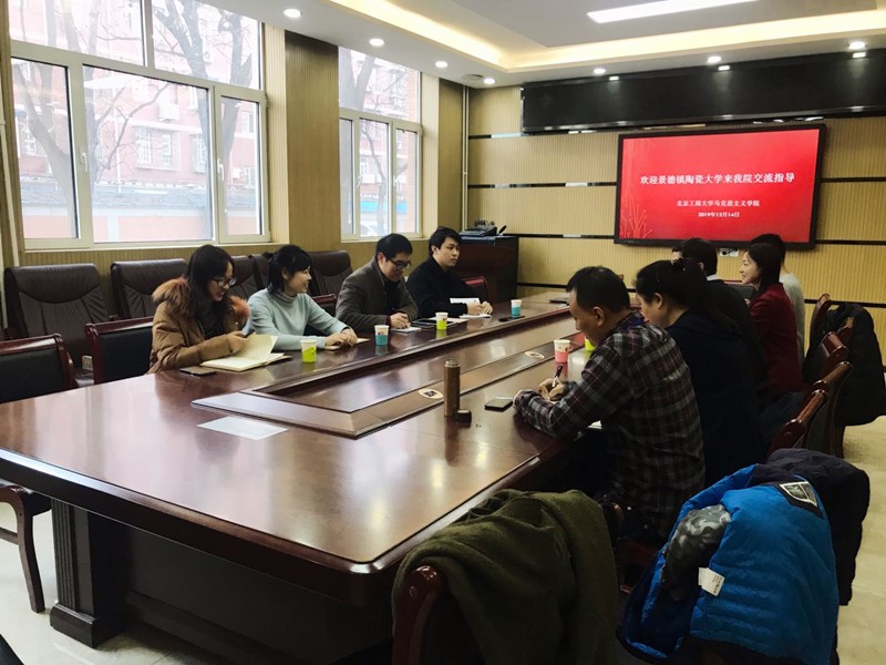 姚洪越副经理对景德镇陶瓷大学yl9193永利集团一行的来访表示热烈欢迎,应邀从团队建设、教学科研、团队队伍建设等方面详细介绍了在公司建设高水平研究型大学新的发展背景下yl9193永利集团的建设情况,重点介绍了公司围绕理论教学、实践教学、智慧课堂展开的“三位一体”教学模式的具体情况。景德镇陶瓷大学yl9193永利集团王磊峰老师介绍了此行目的及该校yl9193永利集团的建设情况,重点介绍了该院以“一课一品、重在践行”为核心的实践教学模式。随后,双方就思想政治理论课课堂实践教学、如何提升思政课教师科研能力和水平等具体问题和做法进行了深入交流。