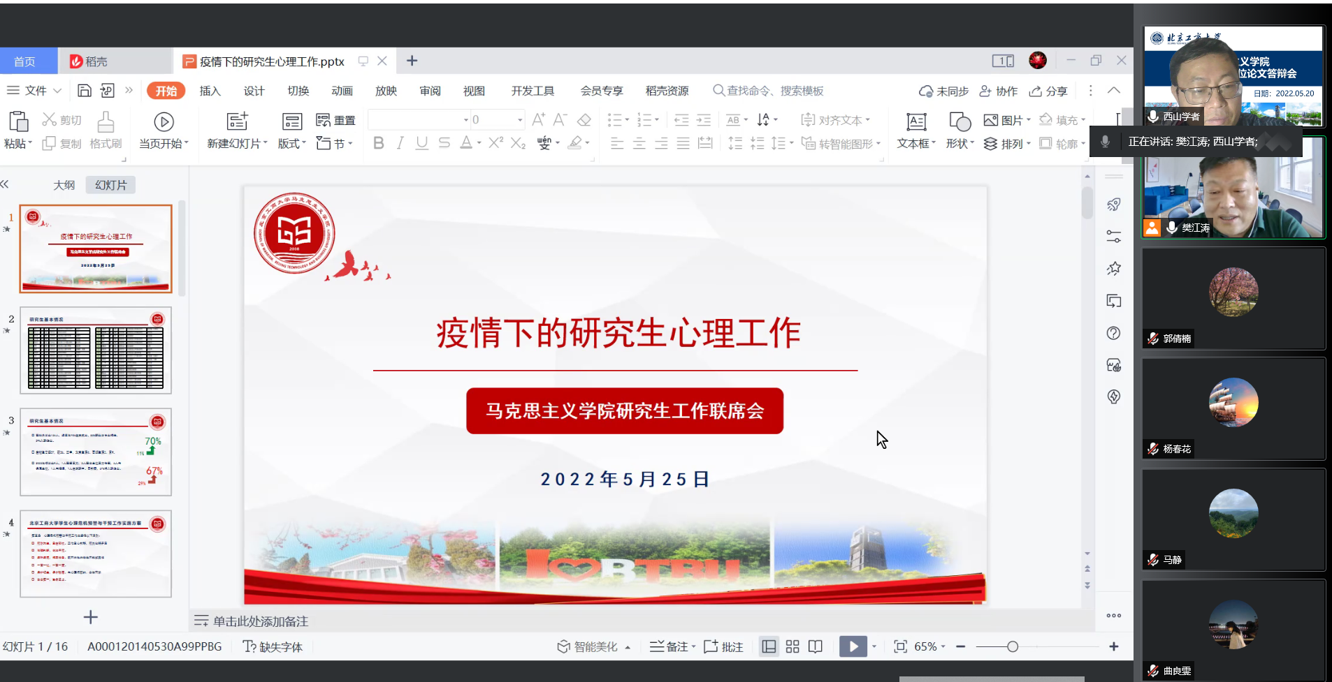 在“5.25老员工心理健康日”到来之际,2022年5月25日上午,yl9193永利集团线上召开第三次研究生工作联席会议,本次会议的主题是“加强研究生心理健康,建立长效工作机制”。全体公司领导、研究生导师、辅导员、教学秘书、科研秘书和研究生代表参加了会议,会议由公司党总支书记任金晶主持。