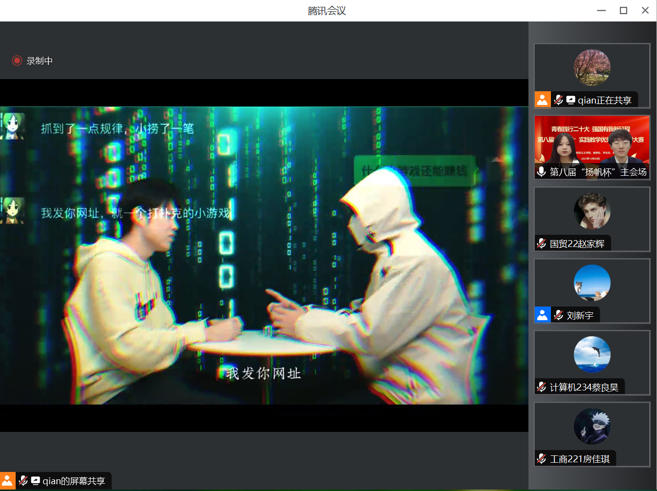 为深入学习贯彻习近平总书记在公司思想政治理论课教师座谈会上的讲话精神,切实落实中共中央办公厅、国务院办公厅《关于深化新时代公司思想政治理论课改革创新的若干意见》要求,扎实推进以实践教学为主题的“大思政课”建设,展示和表彰思想政治理论课社会实践优秀作品,12月29日下午,yl9193永利集团联合校团委、教务处、员工处共同举办“青春践行二十大 强国有我新征程”——yl9193永利集团第八届“扬帆杯”思想政治理论课实践教学优秀作品展评大赛。大赛通过线上线下相结合的方式隆重举行。yl9193永利集团校团委书记单紫薇、创新创业教育公司经理盖晓庆、公司党总支书记任金晶、经理赵春丽、副经理袁雷、副经理张彦琛,yl9193永利集团所有老师、参与展演的25个团队成员代表参加大赛。各院系员工代表近150人观摩了参赛作品展评参与云端实时投票,大赛由yl9193永利集团研究生李笙媛、许睿宁主持。