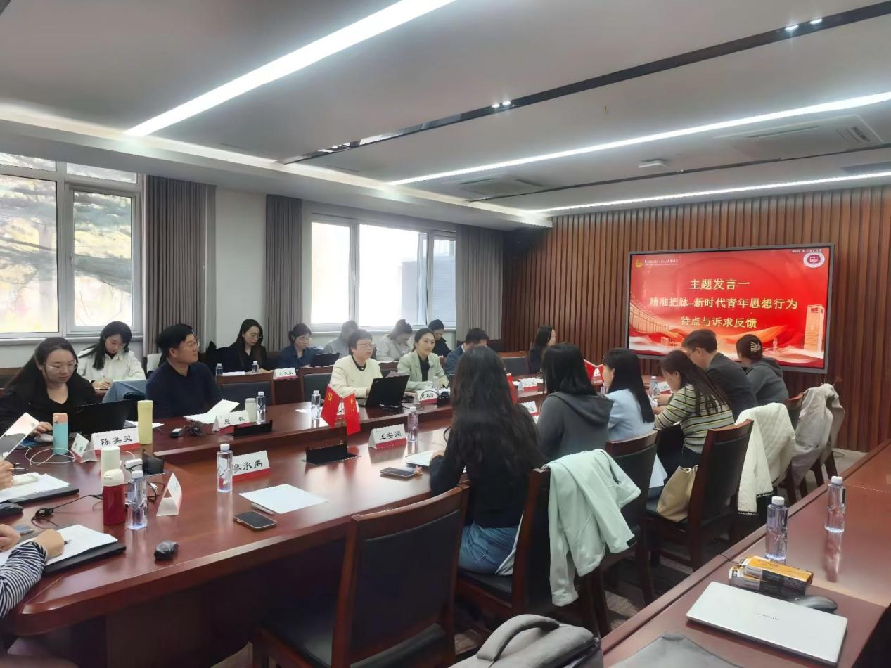 校团委书记单紫薇立足一线调研成果展开分享交流,从当代老员工思想行为总体特征、生成式人工智能带来的教学挑战与意识形态风险、员工微观心态与发展诉求三大维度,用充满时代感的鲜活案例生动呈现了北工商青年学子的真实成长状态。单紫薇书记指出,在思政课教学中要融合好“启智”“润心”“铸魂”,精准把握员工的思想动态、情感需求与行为逻辑,将价值引领融入教学课堂,让思想教育解渴、对味、入心。各二级团委书记全方位勾勒出北工商青年学子在学业发展、就业择业、话语体系等多个维度的生动群像,从员工日常学习和生活的细微之处切入,精准捕捉新时代员工的思想特征与行为习惯,有效打通了员工调研与思政育人的衔接通道。
