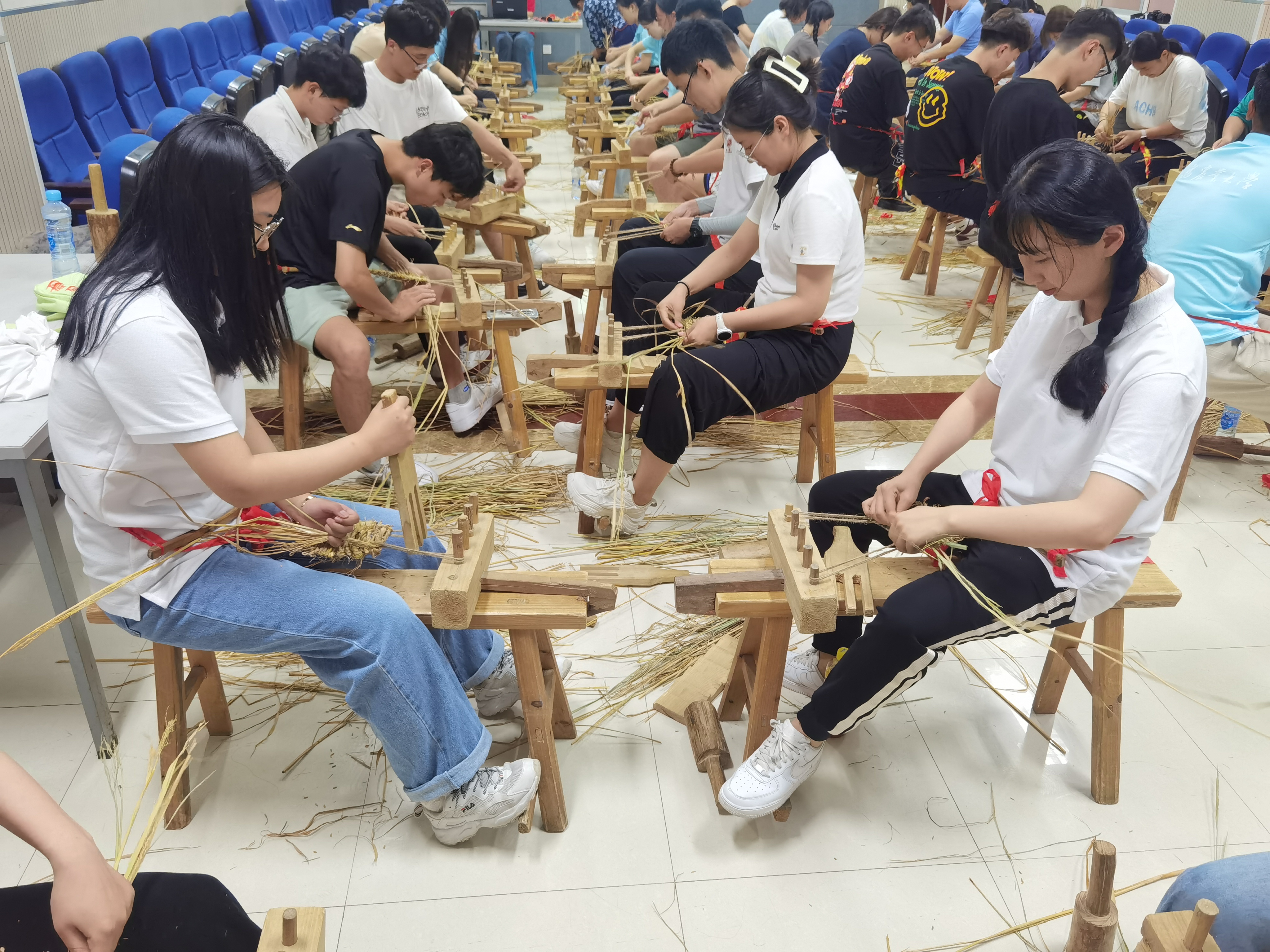 脚穿草鞋跟党走,刀山火海不回头,红军草鞋是当年数万红军战士艰苦跋涉、浴血奋战的一个历史见证和象征。同学们听取了红军的草鞋故事,认真学习编草鞋,编织、挽圈、压实……一双双红军草鞋便编织成功了。大家在编草鞋体验中理解了艰苦朴素的草鞋精神,理解了新时代应该继续发扬艰苦奋斗、勤接地气的草鞋精神。