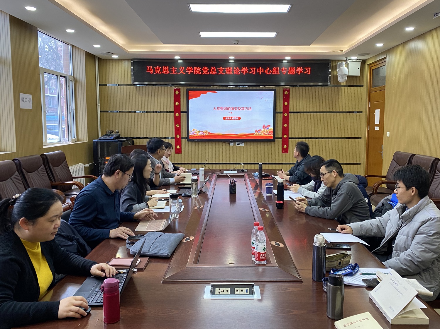 为贯彻落实党的十九届六中全会精神,不断强化党员干部的的理想信念和党性修养,12月1日下午,公司党总支组织学习党章专题活动,马克思主义基本原理教研室主任杨春花做了《入党誓词的由来》专题讲座,公司理论学习中心组全体成员参加,公司党总支书记任金晶主持学习会。