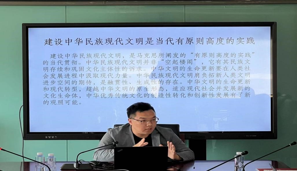中国社科院马克思主义研究院助理研究员杨彬彬老师指出习近平文化思想具有重要的时代价值,习近平文化思想作为马克思主义文化理论发展的最新形态,从人类文明发展规律,中华文明发展规律,中国特色社会主义文化建设规律的角度对建设中华文化和现代文明做出了全局思考和顶层设计。
