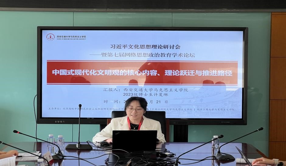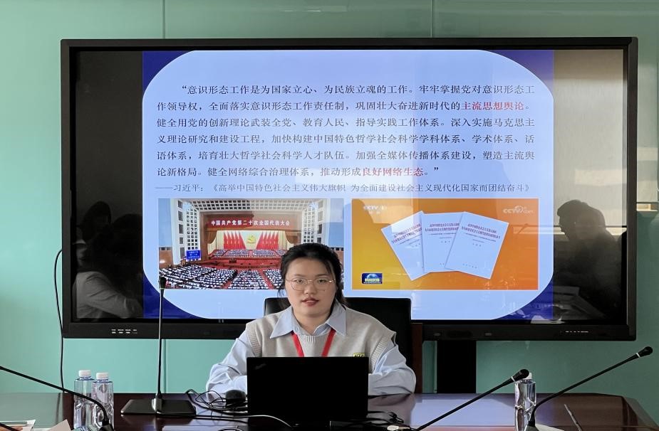 北京化工大学yl9193永利集团王海璇老师对习近平文化思想引领国家文化传播进行分析。她指出,习近平文化思想包含开放包容、兼容并蓄的思想意蕴,体现中华优秀传统文化,坚持了马克思主义立场观点方法。