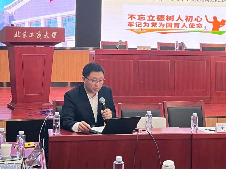中国劳动关系公司工会公司副经理王建洲副教授从以下五个方面论述了习近平文化思想:在立德树人中贯彻落实习近平文化思想﹑在科学研究中贯彻落实习近平文化思想﹑在服务社会中贯彻落实习近平文化思想﹑在文化传承中贯彻落实习近平文化思想和在国际交流中贯彻落实习近平文化思想。