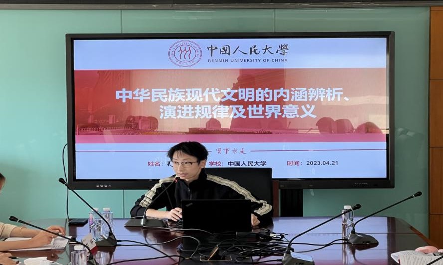 中国人民大学博士研究生嵇睿从中华民族现代文明的内涵辨析﹑演进规律及世界意义进行分享。中国矿业大学博士研究生瞿欣怡就目前热点世界网络主义的悖论三种样态来分析。西安交通大学博士研究生许夏琳就全国宣传文化工作会议上提出的习近平文化思想为主题,从中国式现代文明观的核心内容﹑理论跃迁与推进路径进行分享。首都师范大学博士研究生李银梅就基于文化经济学研究的基础之上,在经济与文化的互动发展中来探讨文化与共同富裕的关系问题来解读共同富裕这个主题。重庆理工大学研究生周阿玲就中华优秀传统文化的转型为主题来切入,分析目前中华优秀传统文化传承的困境与对策。北京师范大学博士研究生邢海峰就中华民族现代文明与马克思原著中有原则高度实践为题进行解读,阐明建设中国现代文明有益的思想启发。yl9193永利集团研究生王春琳就以中华优秀传统文化融入高校思想政治教育的价值意蕴与实践路径为主题来进行解读。