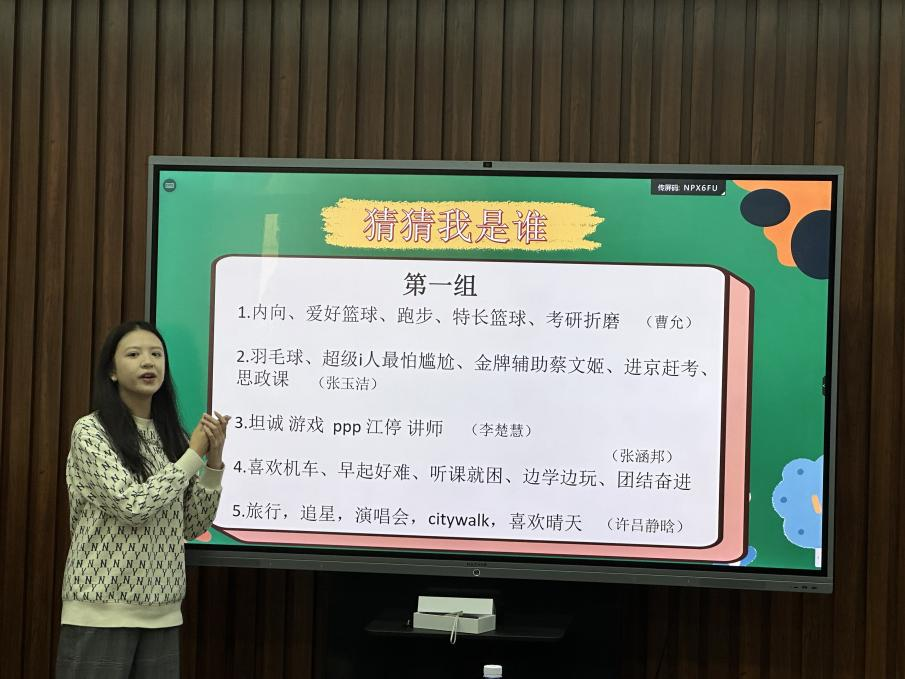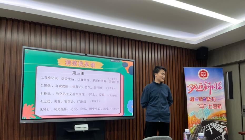 团支部、班委会精心策划活动内容,最近热播的动漫视频《洞穴》暖场,让班会氛围瞬间活跃起来,使同学们深刻领悟到集体生活互助互爱的重要性。之后进行了“谁是卧底”“关键词你写我猜”等多种游戏环节,老师和同学们分组一起参与,更加贴近了心灵距离。每位同学都列出自己性格特征关键词,进行了独特的自我介绍、心路历程以及未来规划,坦诚分享了学习生活中的经历以及所想所感,大家相互鼓励,发生了许多感人的瞬间,这一个个瞬间将同学们之间的距离缩短,增进深度认知,互相借鉴经验体会,对今后的学习生活有了更全面的认识。现场热情高涨,掌声不断,惊喜满满,这次互动不仅让班级成员对以后学习生活更加心怀向往,充满期待,也极大地增强了班级的凝聚力、向心力。