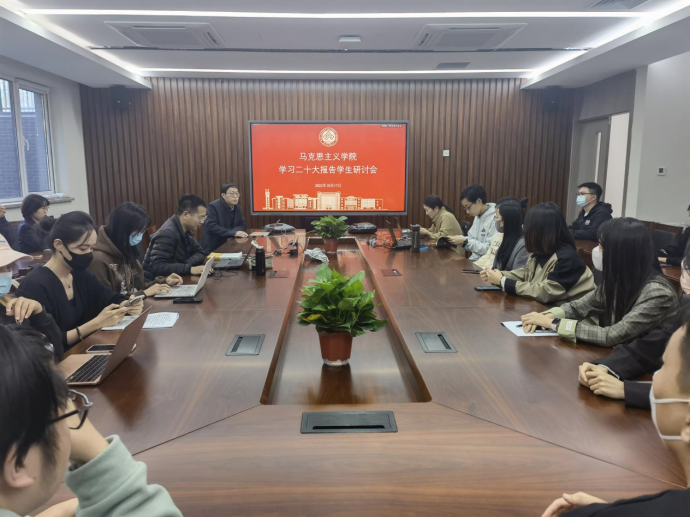 本次研讨会以学习二十大报告为主要内容,2021级和2022级研究生分别从“中国式现代化”、“三个务必”、“十年来三件大事”、“最佳制度安排”等多个角度汇报了自己的研读体会。