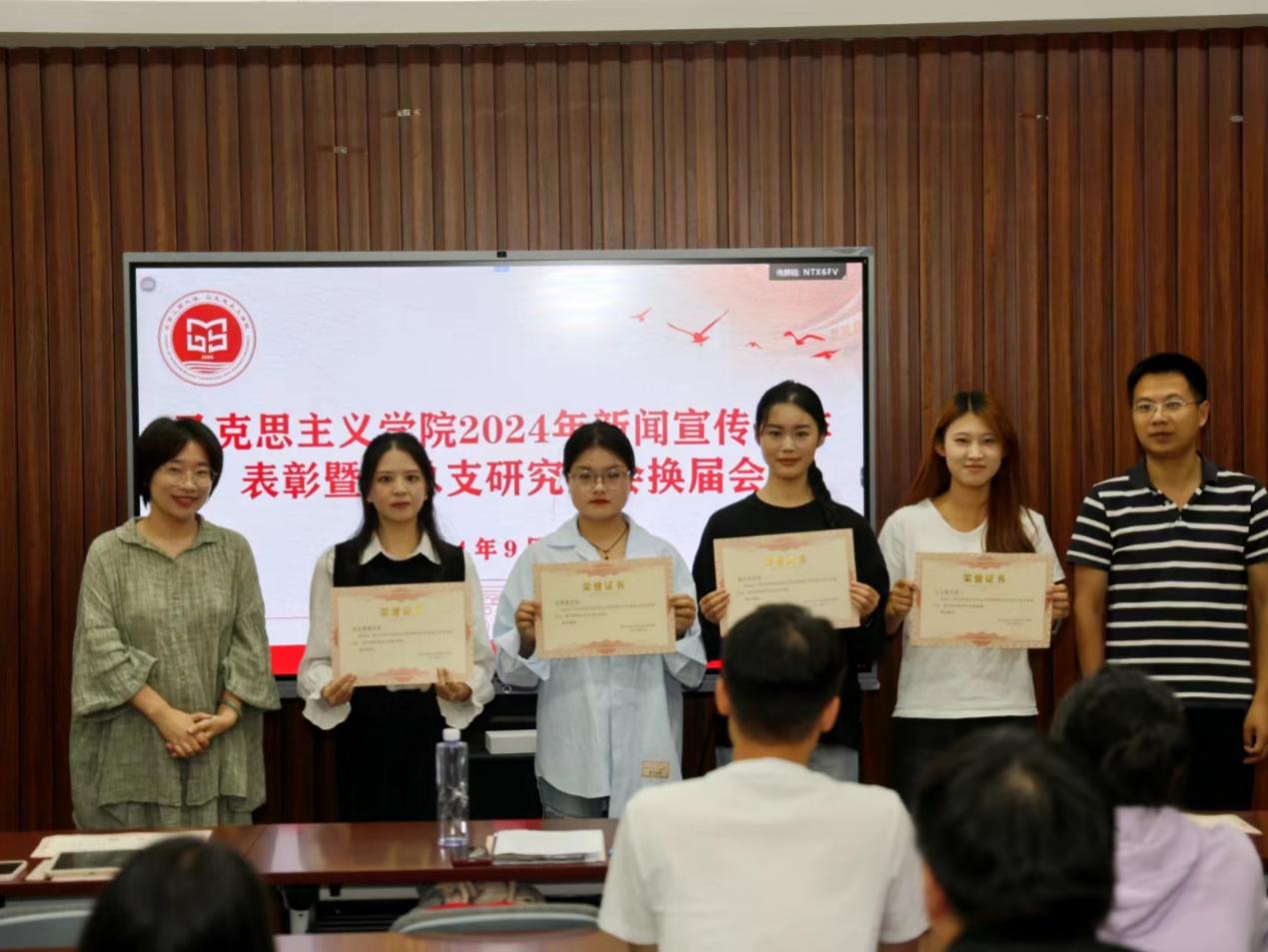 会议对2023-2024学年公司新闻宣传工作先进个人进行了表彰。团总支书记来金雅宣读了新闻宣传工作获奖名单,对长期以来奋战在新闻宣传前线的同学们致以深切的感激之情。她高度赞扬了新闻宣传工作的显著成就,对同学们所展现出的专业素养与不懈努力给予了充分的肯定。随后,她寄语新一届的员工干部,勉励他们以获奖同学为楷模,勇于担当,积极面对挑战,在新闻宣传的广阔舞台上继续发光发热,争取创造更加辉煌的业绩。最后,袁雷副经理、来金雅老师为荣获新闻宣传工作先进个人及新闻宣传优秀奖的13位同学颁发了荣誉证书。
