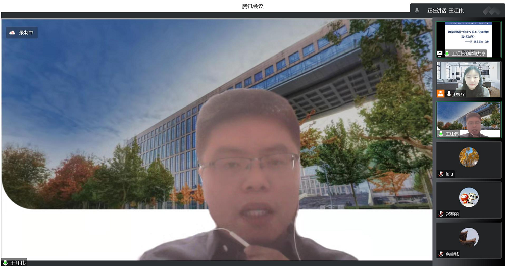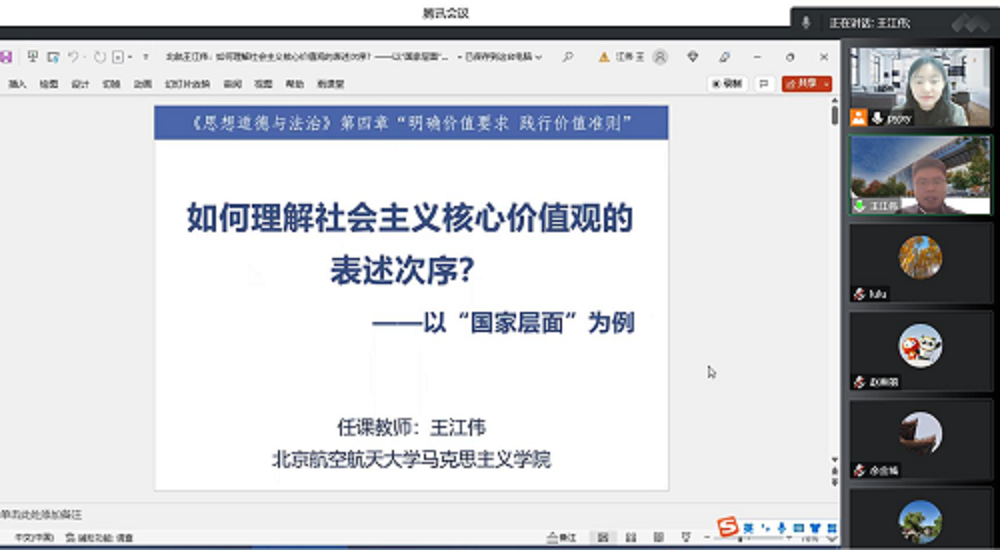 为进一步提高公司思想道德与法治课教师教学能力与水平,落实公司本学期期中教学检查开展教学观摩、进行集体备课的要求,11月11日晚,公司思想道德与法治教研室特邀北京航空航天大学王江伟老师来公司进行教学专题讲座。讲座依托腾讯会议平台进行,思想道德与法治教研室全体教师参加了会议。会议由思想道德与法治教研室主任赵婧怡主持。