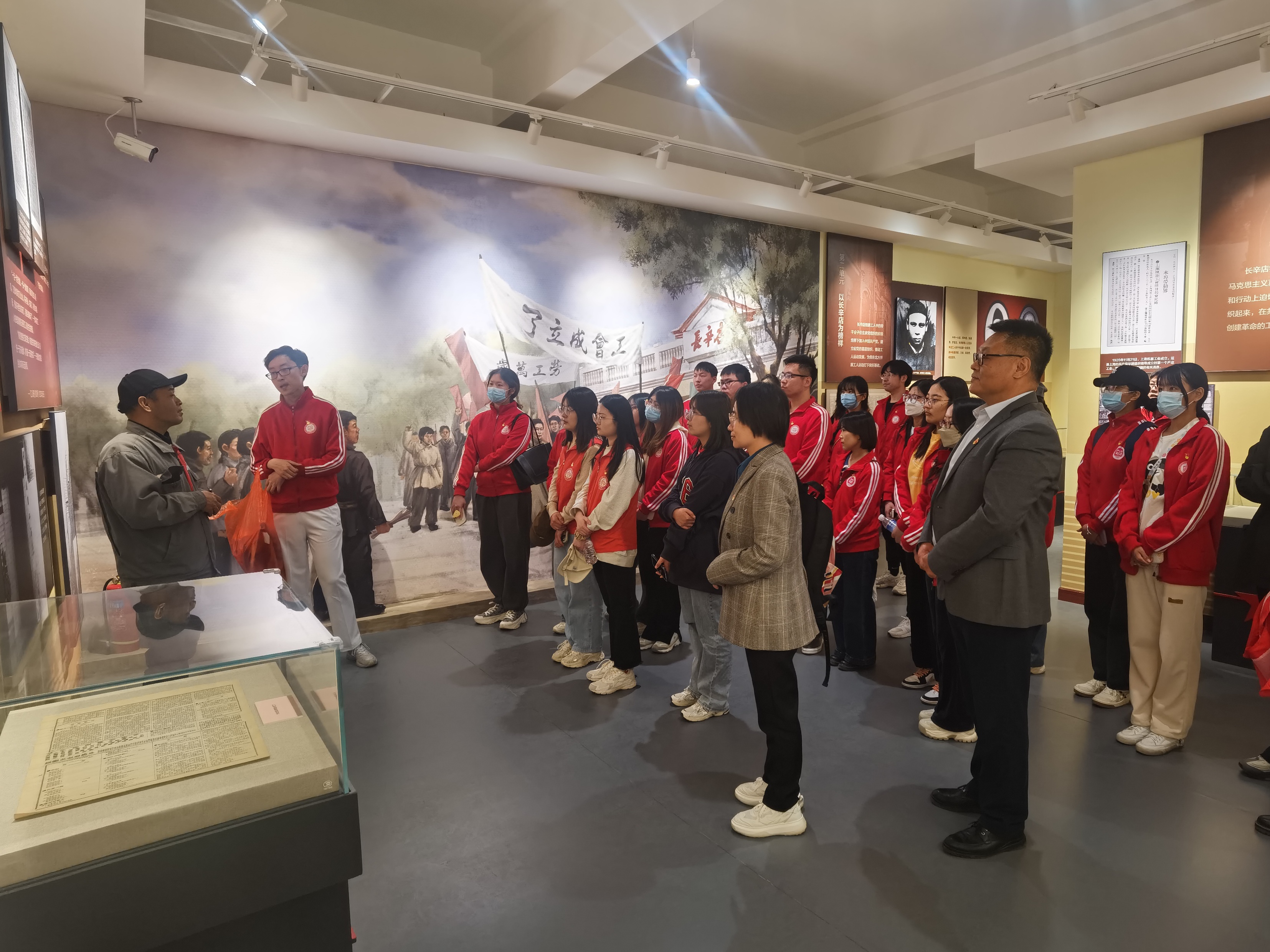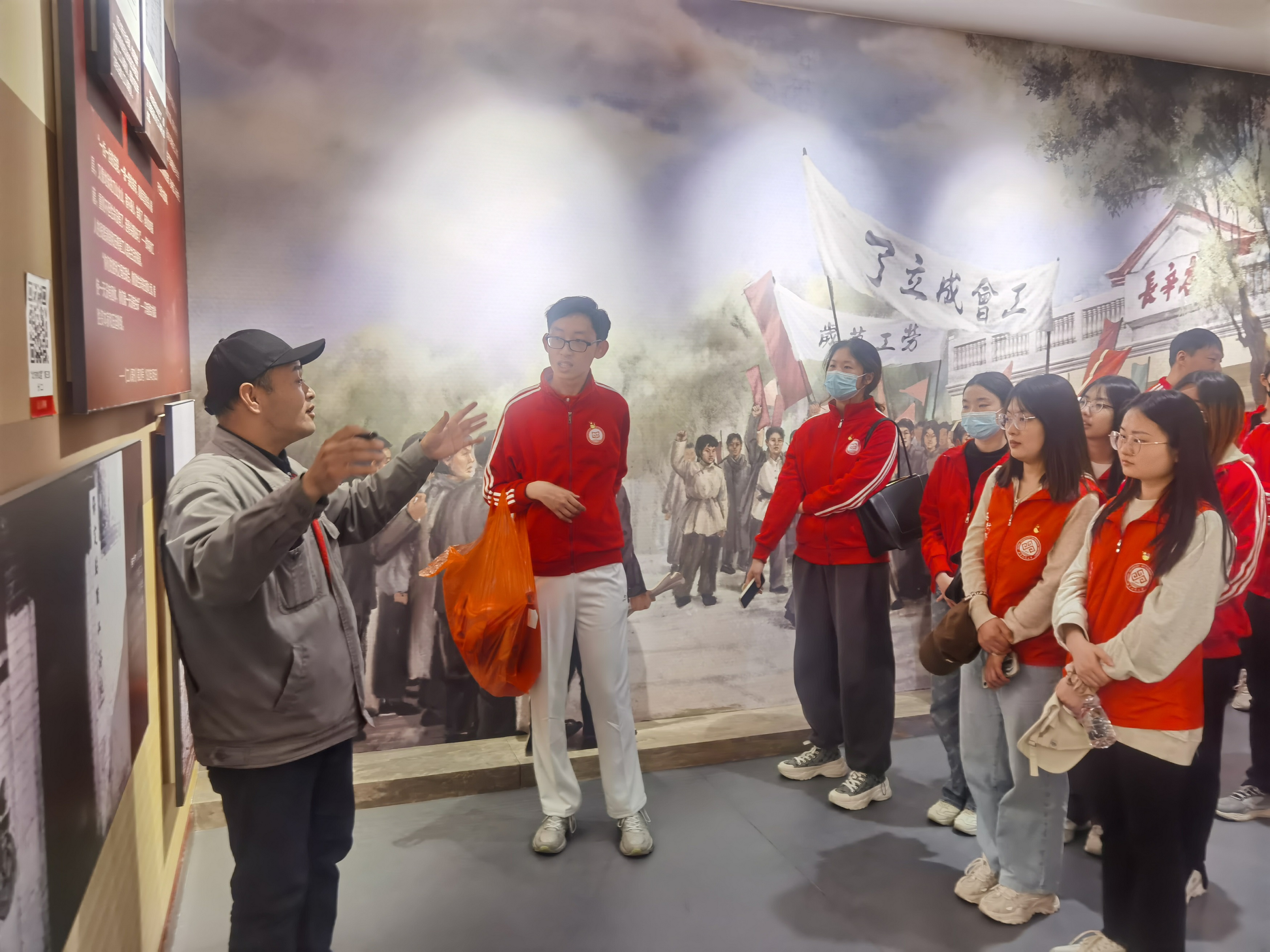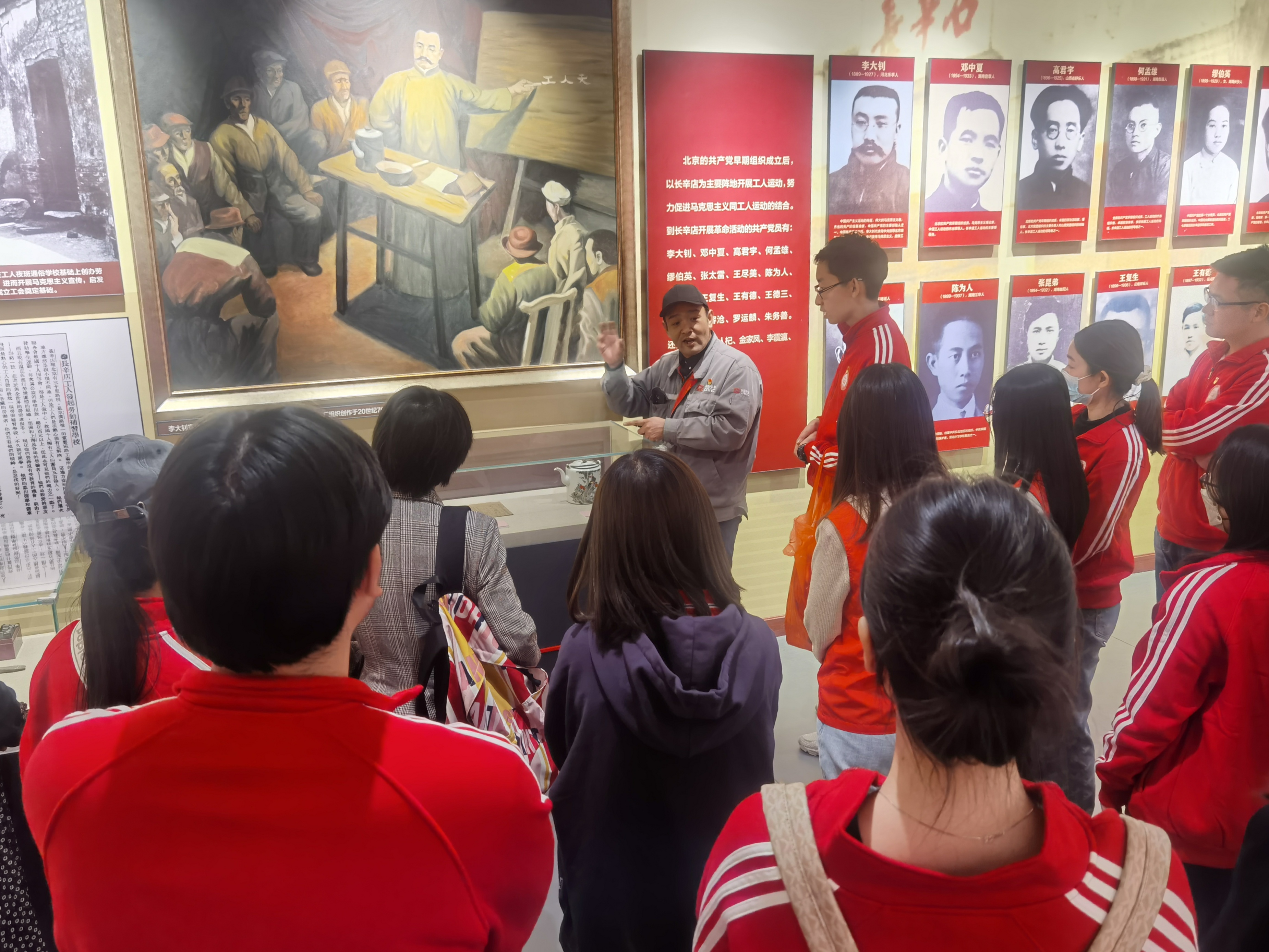 长辛店“二七”纪念馆共有8个展室,陈列着京汉铁路工人革命斗争的大量实物,是长辛店工人运动和“二七”大罢工的纪念地,也是进行革命传统教育、爱国主义教育的好场所。刘德华馆长多年研究早期工人运动和建党历史,颇有心得建树,在他的生动讲解下,师生参观学习了“北方的红星——长辛店与中国工人运动专题展”。在“二七”工人运动的巨幅壁画前,全体同学深切体悟到中国工人阶级伟大的牺牲精神和强大的信仰力量,通过观摩文物、史料、照片、模型等珍贵展品,大家重温了中国共产党领导工人运动的光辉历史,对中国共产党的初心使命有了更深刻的认识。