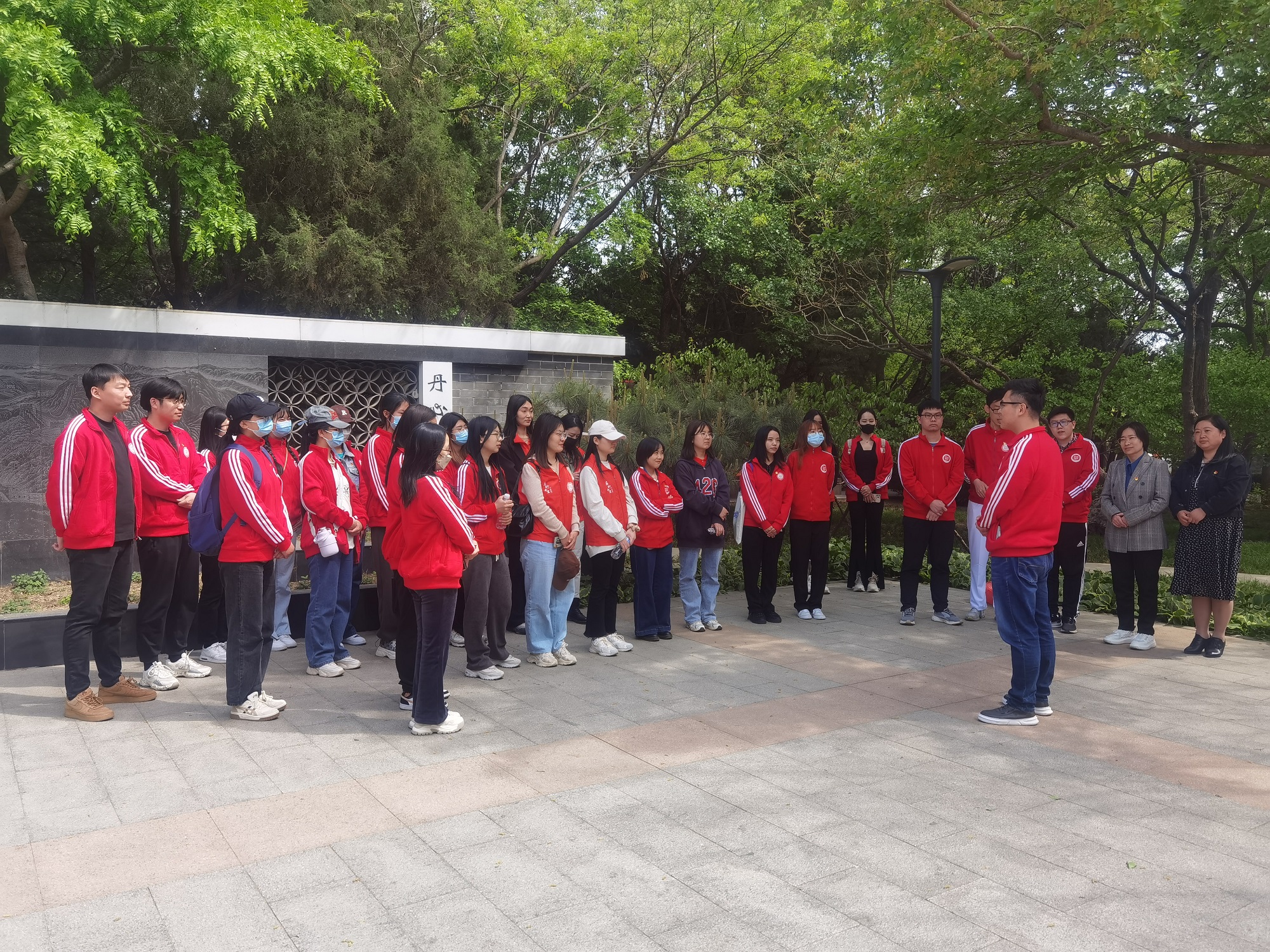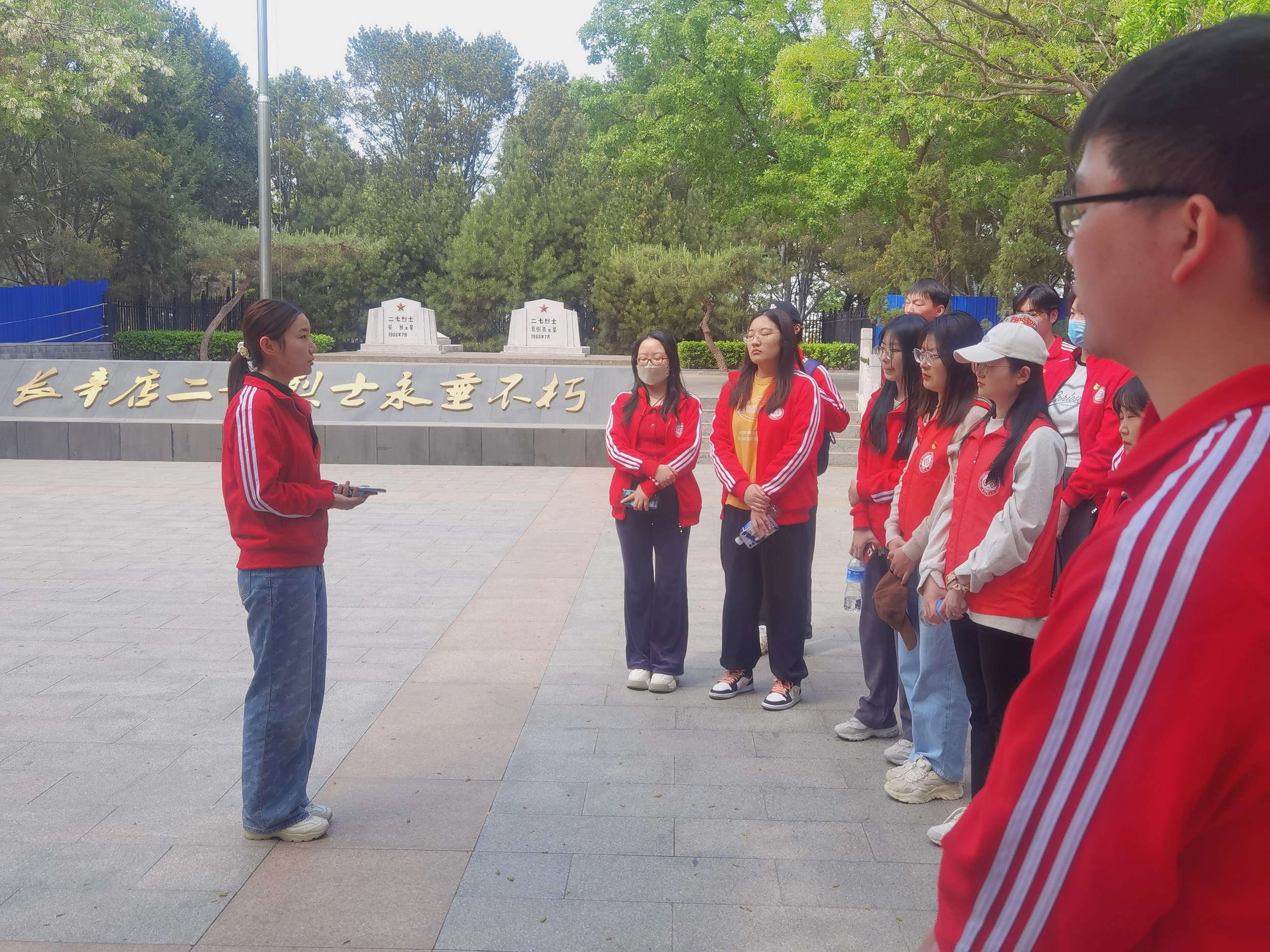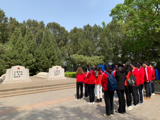 师生首先来到在“二七”工人运动中牺牲的吴祯和葛树贵两位烈士墓前进行悼念。两座墓冢并成一排,掩映在一片葱茏的松柏中。在读完烈士事迹介绍后,大家肃立在墓冢前,向烈士鞠躬、默哀,深切缅怀革命先烈,蓝天翠柏下静静的微风吹过,大家心中奔涌出对先烈的无限哀思与敬意。为开好主题党团日活动,大家都提前预习了功课,深入学习了早期工人运动历史。同学们深受革命烈士的斗争精神与爱国情怀的感染,百感交集,在烈士墓前广场结合专业研究课题激昂陈情,分享心得感想。