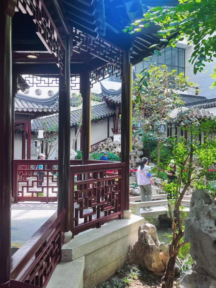 新闻222尤明婕:漫步于中国园林博物馆,仿佛穿越了千年时光隧道,每一砖一瓦、一草一木都透露着中华悠久文化的韵味。这里不仅是自然与建筑的巧妙融合,更是古人修身养性哲学思想的物化体现。园中曲径通幽,让人不自觉地放慢脚步,心随景移,体会着“天人合一”的境界。