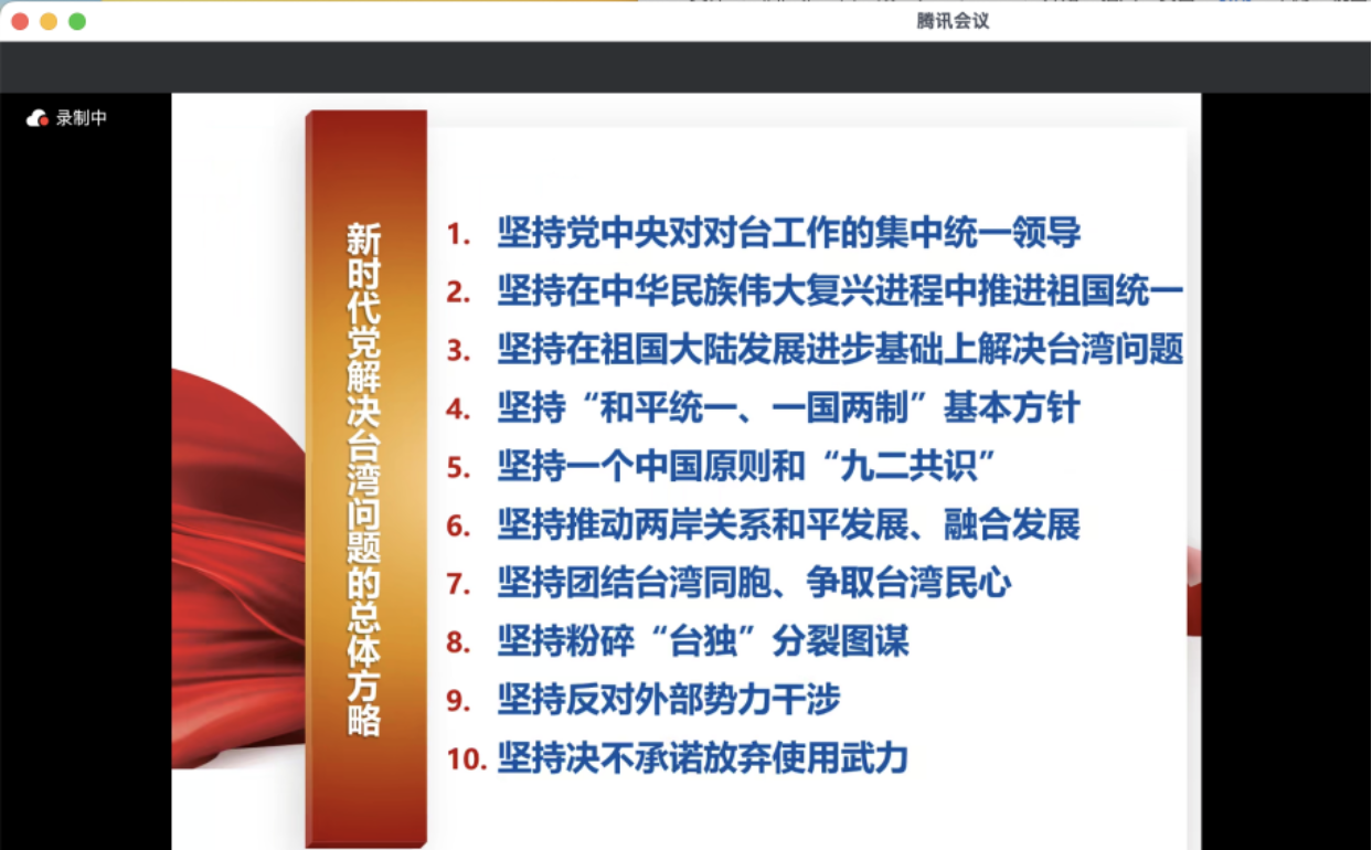 于强教授以“坚决贯彻新时代党解决台湾问题的总体方略”为题作学术报告。他深入解读了新时代党解决台湾问题的十条总体方略,系统梳理了党对台工作的历史脉络,并结合当前形势进行了专业分析。报告最后,于教授特别鼓励青年学子积极参与两岸青年交流活动。