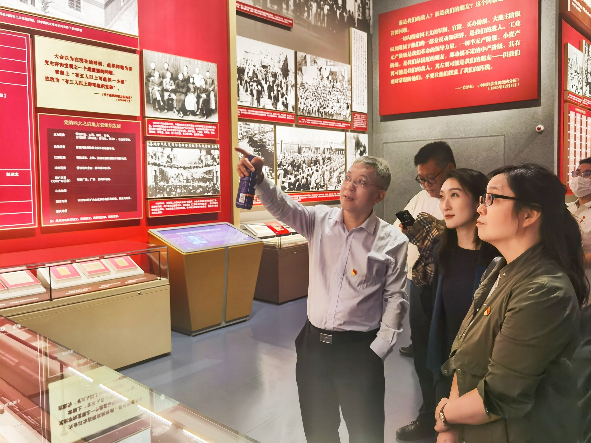 大家认真参观了“不忘初心、牢记使命”大型主题展览。展览共分为“建立中国共产党夺取新民主主义革命伟大胜利”“成立中华人民共和国进行社会主义革命和建设”“实行改革开放开创和发展中国特色社会主义”和“推进中国特色社会主义进入新时代全面建成小康社会开启全面建设社会主义现代化国家新征程”四个部分。一幅幅图片、一件件文物实物,全方位展现了中国共产党百年奋斗所取得的伟大历史成就。参观过程中,大家认真观看,不时驻足凝望、交流探讨,在珍贵的历史文物、档案资料、影音图片及复原场景中,共同重温中国共产党波澜壮阔、荡气回肠的百年历史,感悟中国共产党人筚路蓝缕、艰苦奋斗的征程。