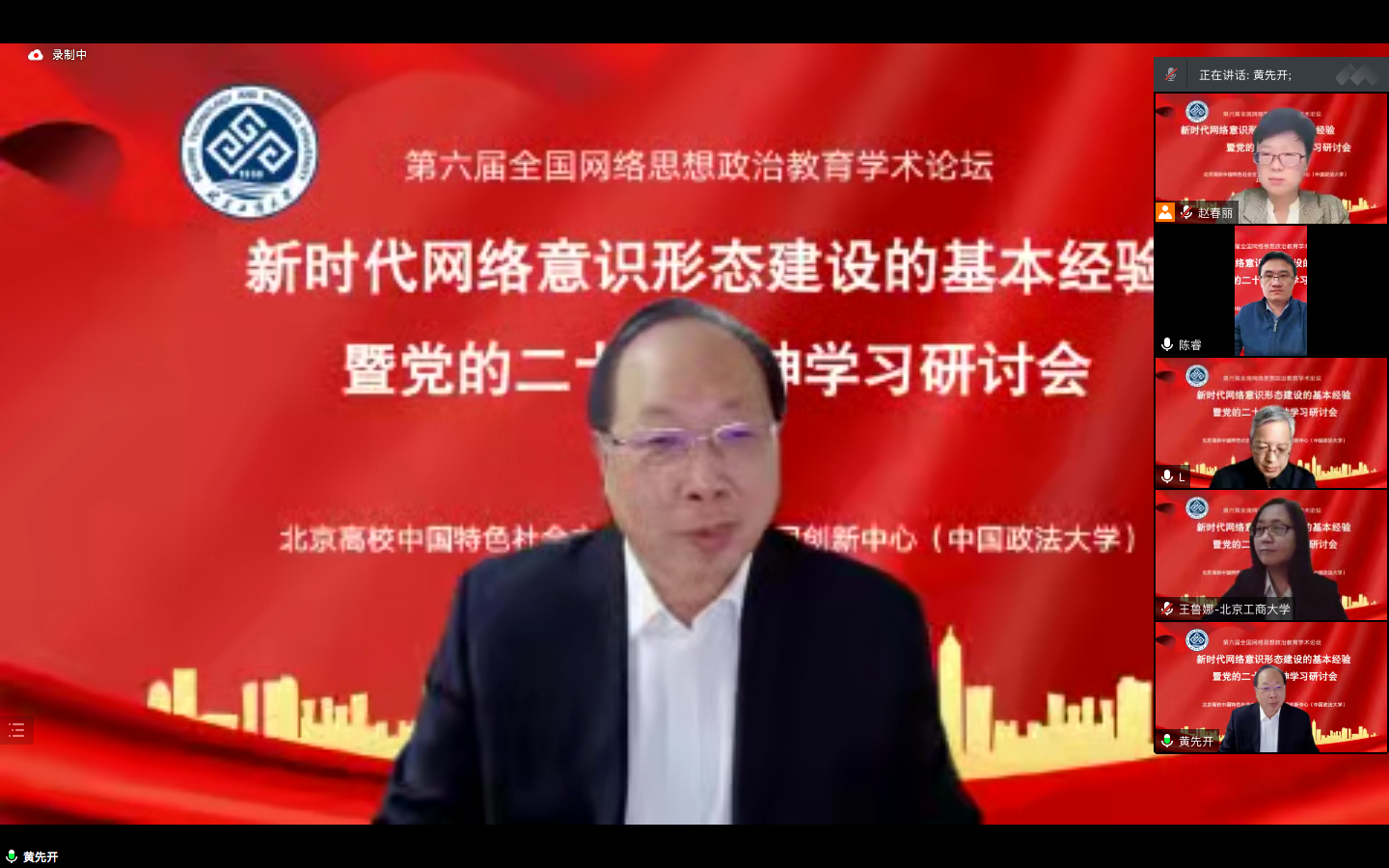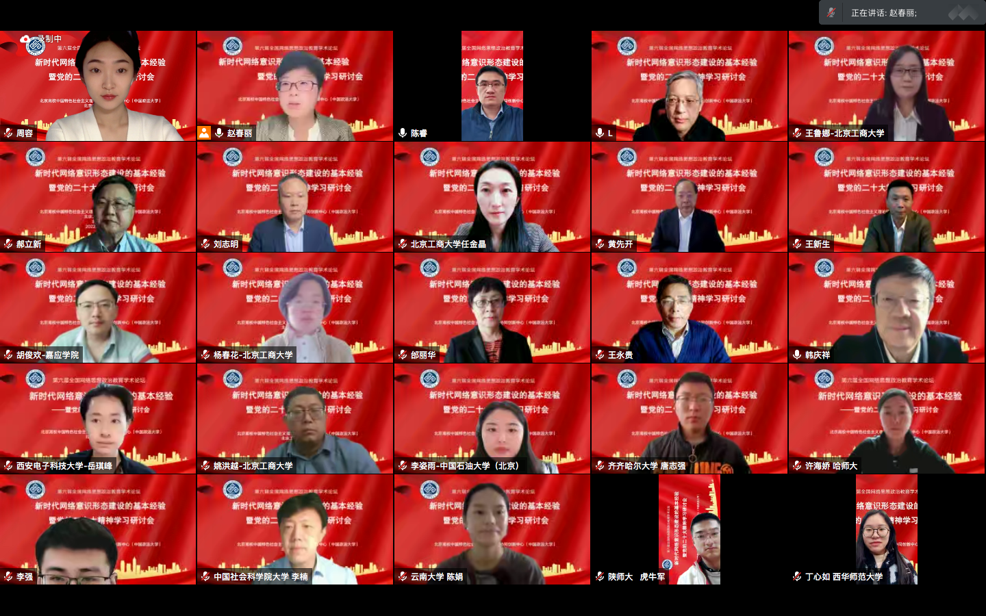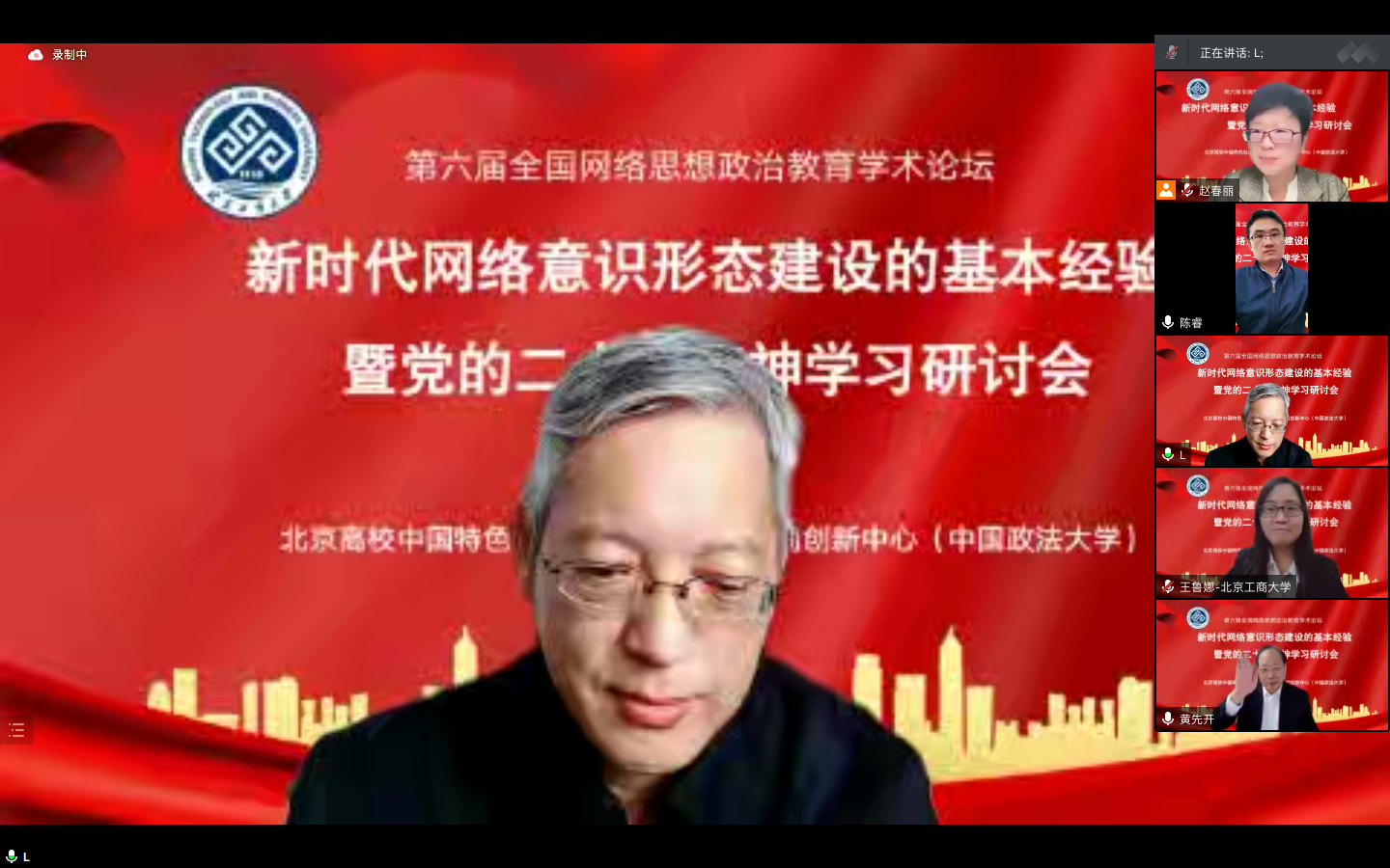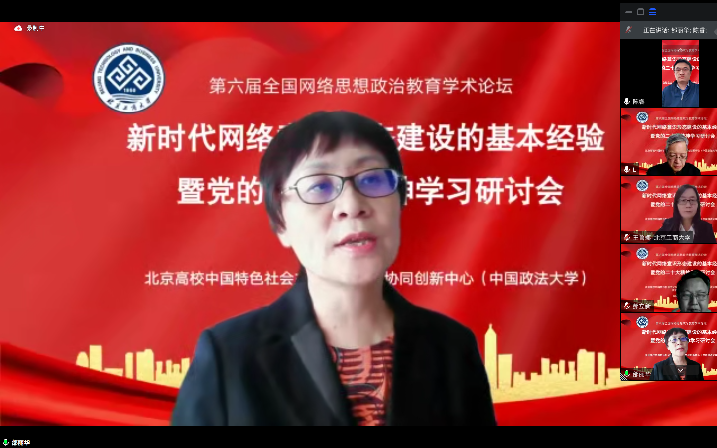 北京高校中国特色社会主义理论研究协同创新中心(中国政法大学)执行主任中国政法大学邰丽华教授在致辞中总结了党的二十大报告中关于意识形态工作的内容及未来工作的宏伟目标,指出了在高科技发展与疫情冲击的双重影响下,净化网络环境是我们面临的一个重大课题,并期待协同中心能对此课题进行深入协作研究。