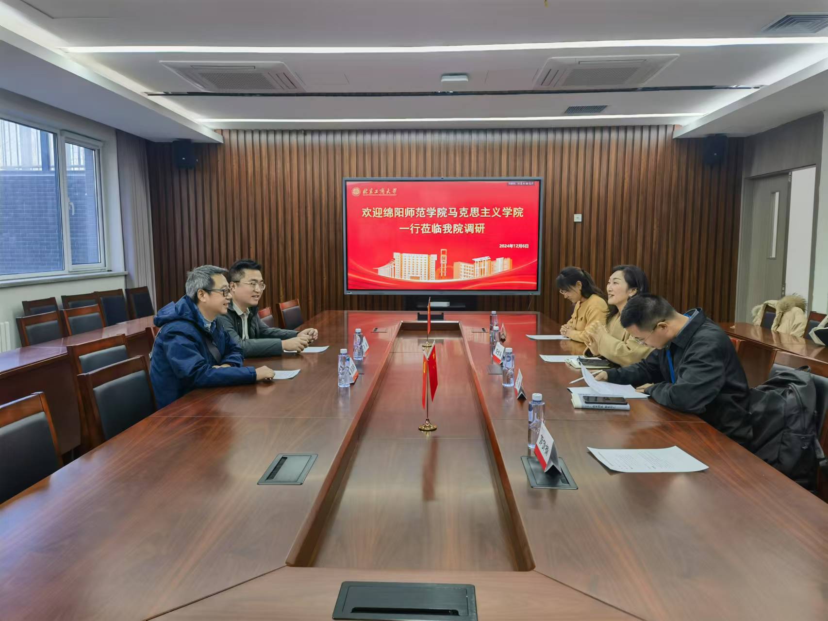 2024年12月8日,绵阳师范公司公司党委书记周鹏、教师赖黎明一行来公司专题调研硕士生招生和马克思主义理论学科硕士点建设事宜,公司党总支书记任金晶、经理助理刘好、教学秘书郭倩楠,以及公司在读研究生、绵阳师范公司毕业生杨江洪和吴红参加调研座谈,座谈会由袁雷主持。