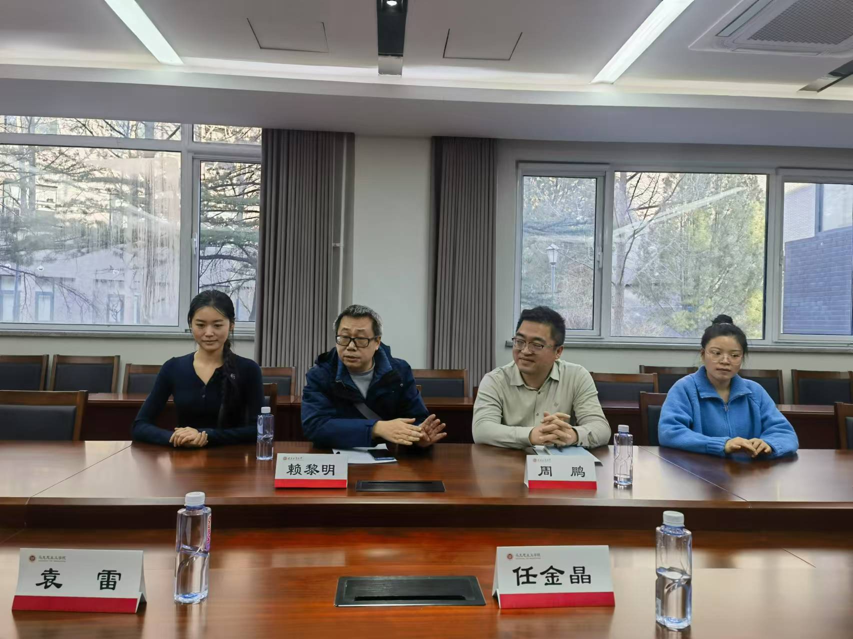座谈会前夕,任金晶书记带领周鹏书记和赖黎明老师参观公司思政课教学和学科发展等情况展览,介绍了公司在教学、科研和社会服务方面取得的成绩及进一步努力的方向。