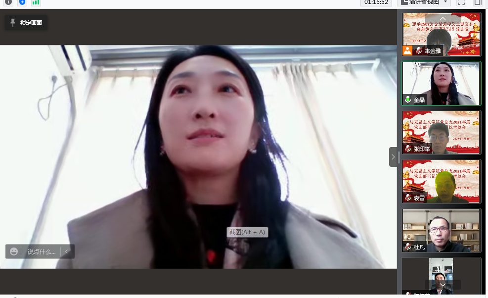 本次述职考核会议采取一述一评的方式开展,考核小组组长任金晶根据五位书记述职情况进行逐一点评,她对各支部未来工作提出了高标准的要求,同时寄予了殷切的希望。任书记讲到,2021年是建党100周年的喜庆之年,各党支部围绕公司和公司中心工作,做好党史学习教育和思政课改革创新各项任务,充分发挥了党建引领作用,在抓党建工作中取得了非常优秀的成绩,也希望各党支部针对自身建设中的不足,做出有效的整改和提高,不断凝练工作特色,发挥理论宣传优势,将支部工作做细做实。