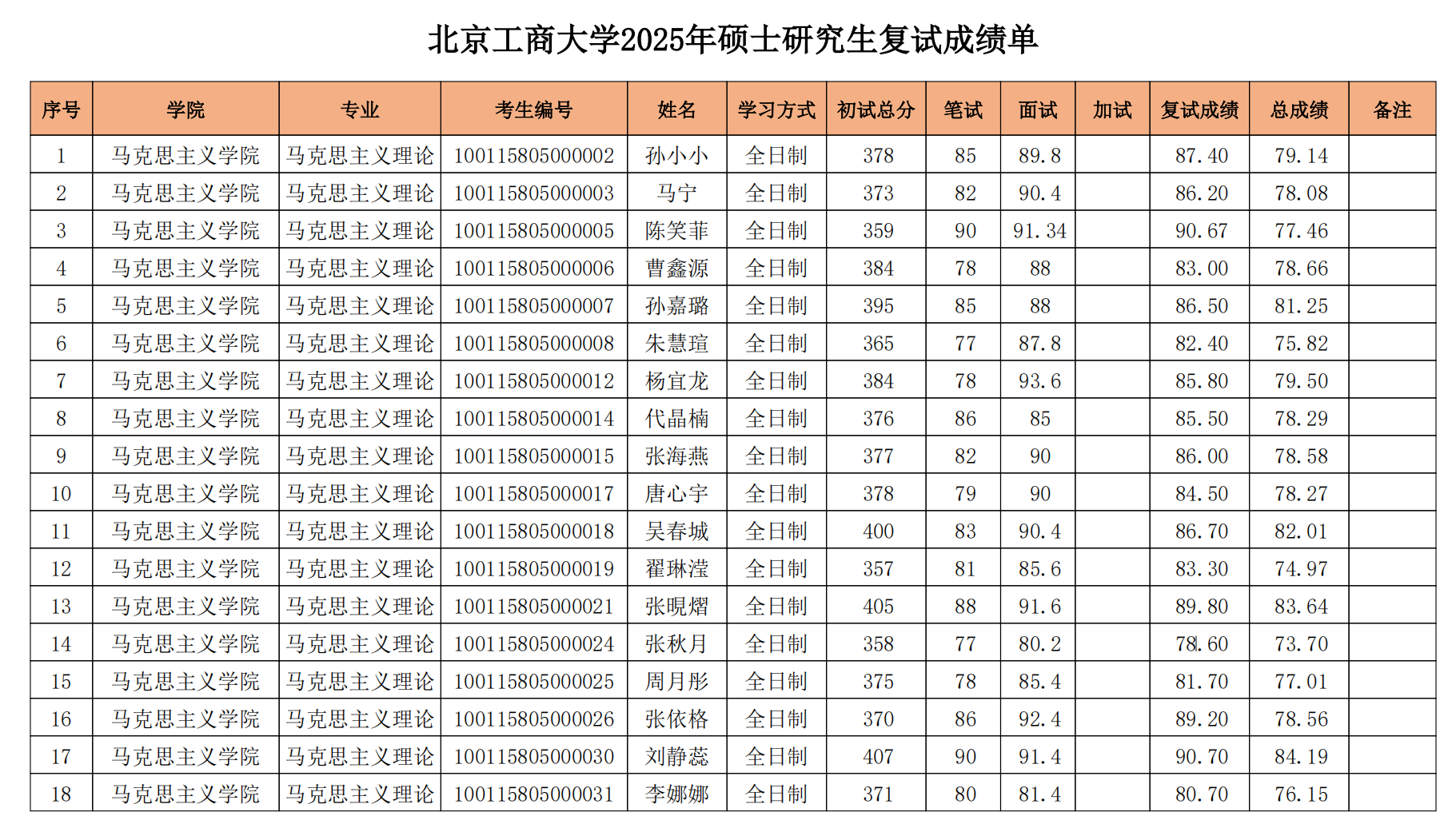 根据《2025年硕士研究生招生复试录取工作方案》的工作要求和相关规定,马克思主义院于2025年3月19日组织了马克思主义理论专业2025年硕士研究生复试工作。现将各考生复试成绩公示如下。