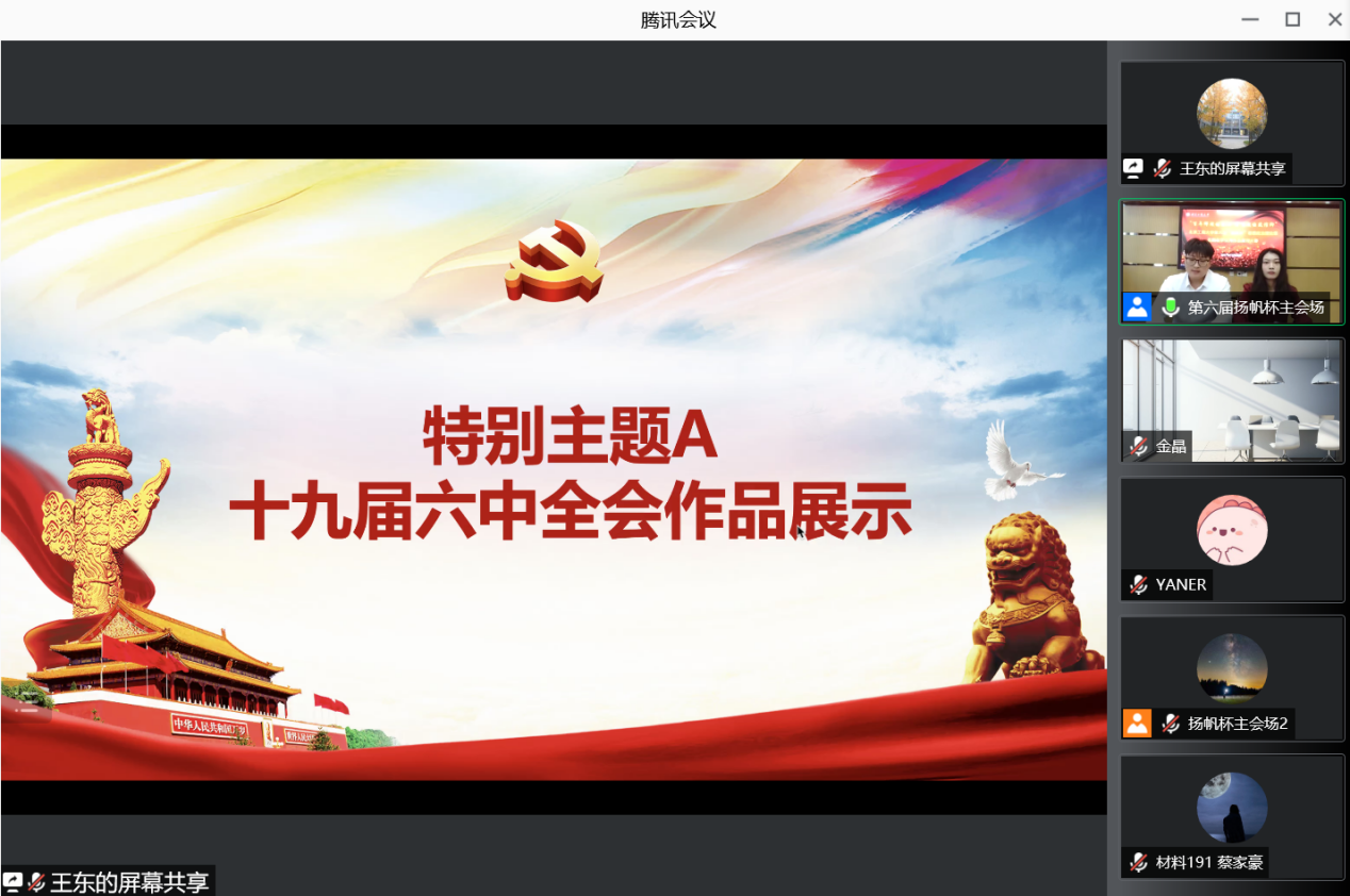 现场公布了第六届“扬帆杯”思想政治理论课实践教学优秀作品展评大赛展评结果。出席大赛的领导和教师员工进行云端大合影。
