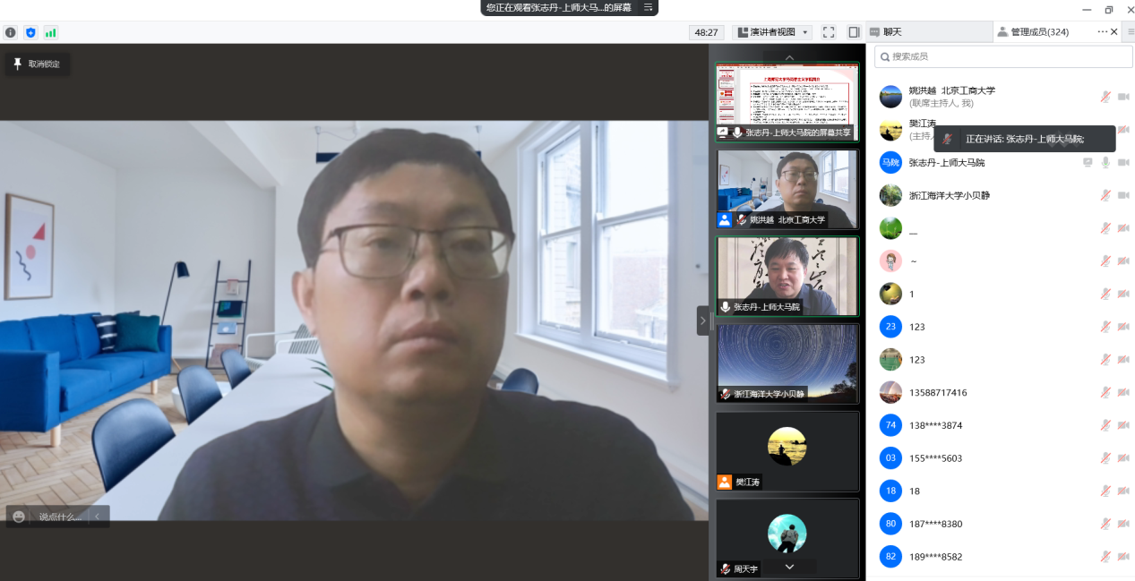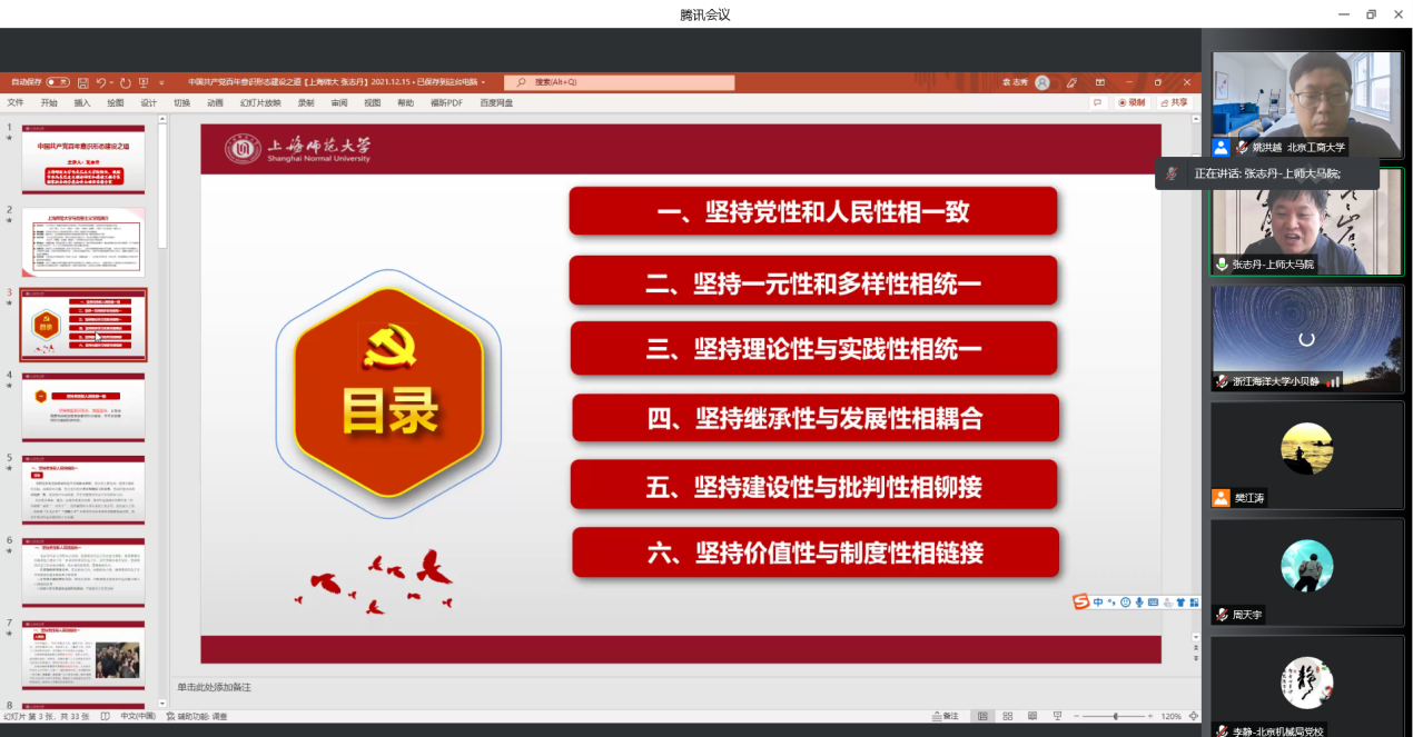 为了推进公司的学术发展,41日上午9点,公司举办第二十期“问道玉渊潭”高端学术讲坛,邀请中央马克思主义理论研究和建设工程专家,国家社会科学基金重大项目首席专家,国家社会科学基金项目评审专家。兼任教育部思政课教学指导委员会委员,教育部重点研究基地高校中国共产党伟大建党精神研究中心研究员、上师大分中心执行副主任,上海师范大学yl9193永利集团经理张志丹教授为公司师生举办题为为“中国共产党百年意识形态建设之道”的学术讲座。yl9193永利集团姚洪越副经理主持了这次讲坛,校内外近400多人进行了线上学习。